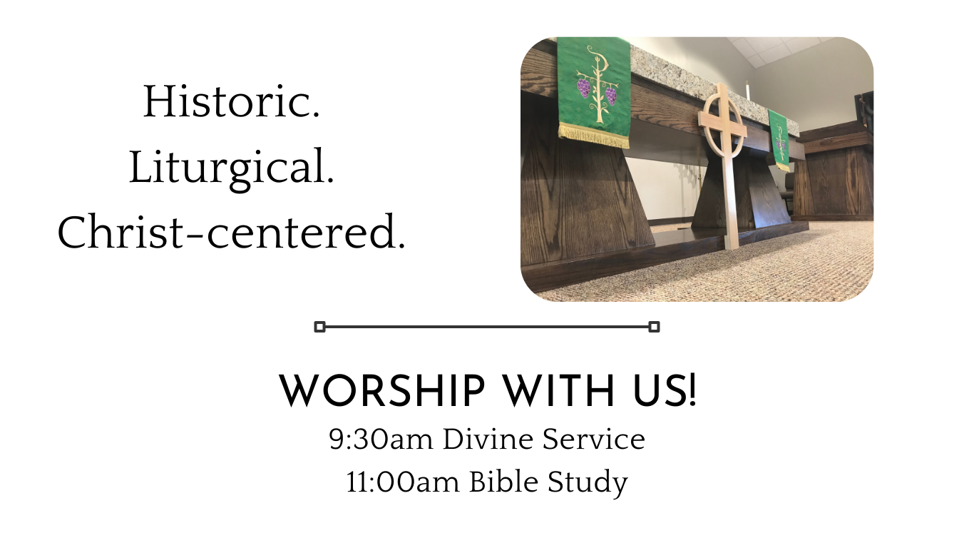 We are a church that celebrates the wonderful gift of forgiveness God delivers through His Word and Sacraments. We preach, teach, and rejoice in Jesus Christ crucified for all.